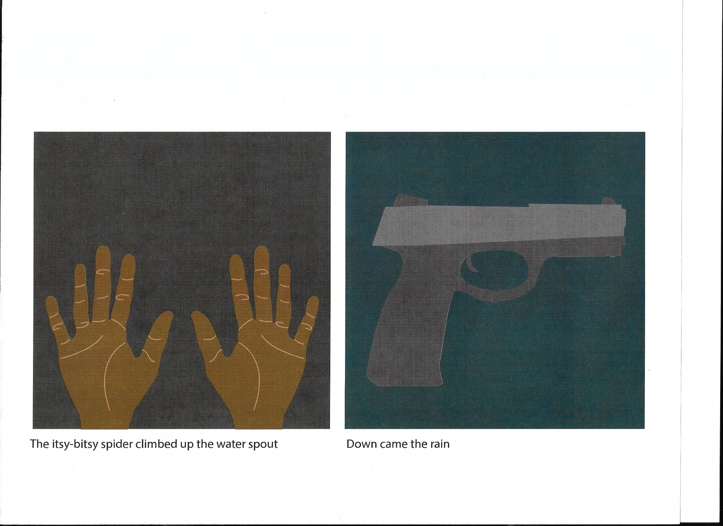 As I continued to sketch, I realized that there are lots of hand symbols within the Black Lives Matter movement. Itsy-Bitsy Spider also uses hand gestures to tell a story, so I knew the two narratives would work well together. I chose black for the background of the black hands because of the black hoodie Trayvon Martin wore when he was killed. I chose navy to stand for the uniforms that police officers often wear as well as the “blue wall of silence.” This was the first class that I was able to integrate my interest in social issues with my design work. I take great pride in this piece and have it currently hanging up in my house.