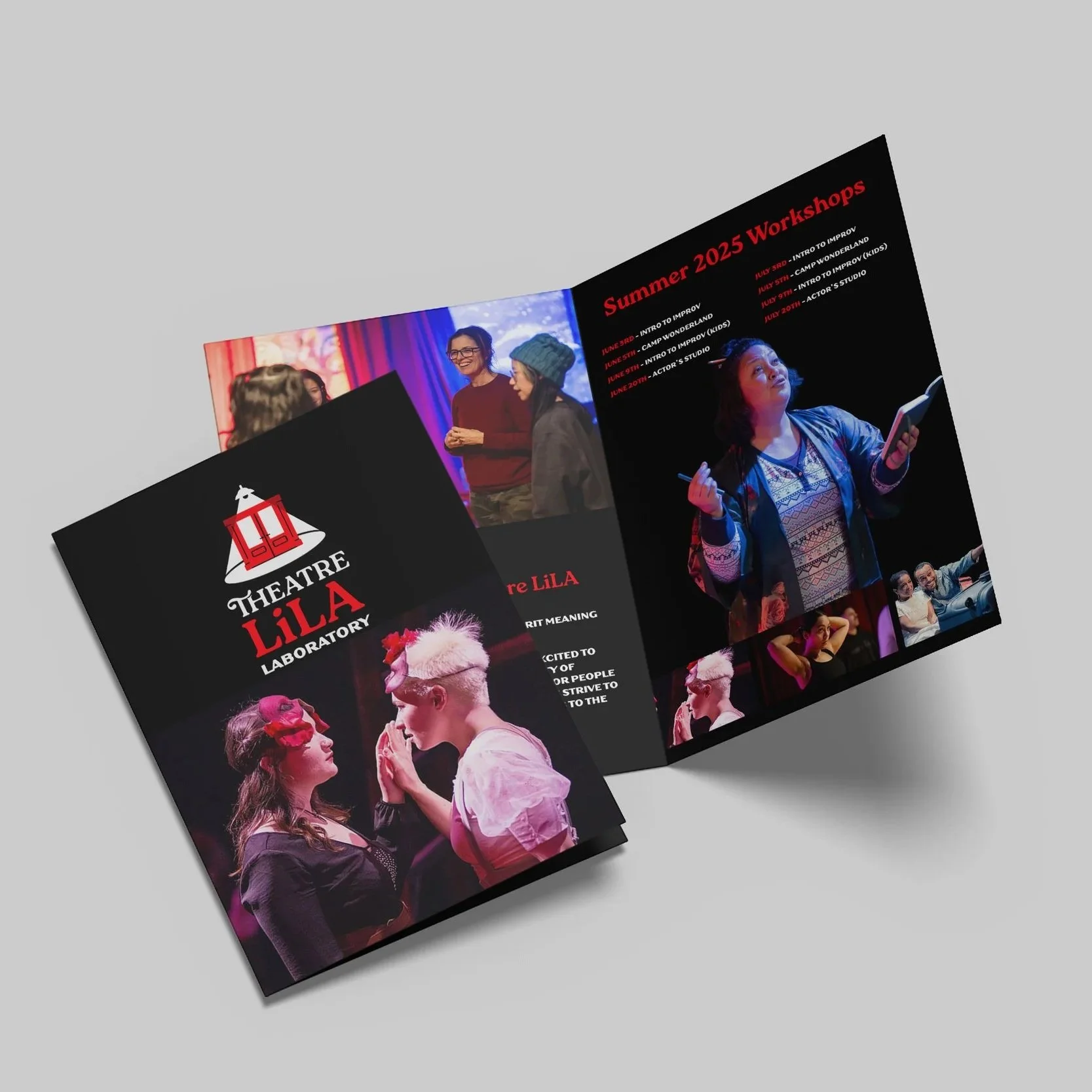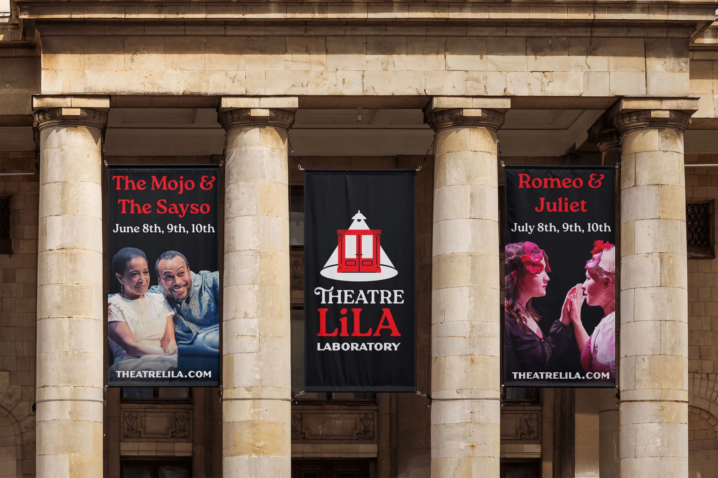 The branding is designed to feel playful, inviting, and electric, achieved by pushing the intensity of the red palette. The process was highly collaborative with Jessica Lanius of Theatre Lila, with frequent meetings to define and refine the brand’s emotional tone.