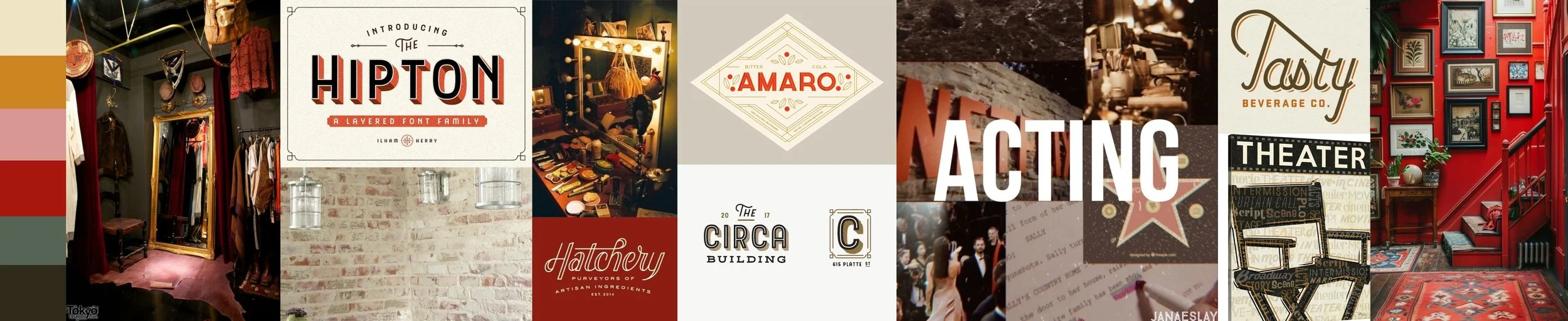 Utilizing the Pinterest board put together by the founder of Theatre Lila I generated potential style directions for the rebrand. I labeled them with theatre based names. We decided to combine the two ideas to create a unique and fun direction for the rebrand. The combination honors the heritage of Theatre Lila (est. 2004) and brought it to the modern era.